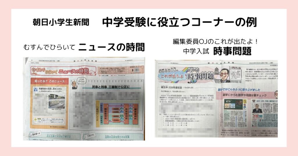 我が家は朝日小学生新聞で時事対策をしました。中学受験を予定されているご家庭にはとても役立つ新聞です。