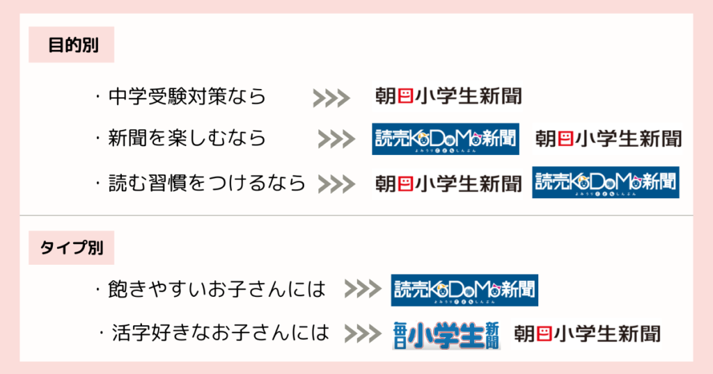 新聞を読む目的で、おすすめな小学生新聞は異なるというのも私たちの考えです。