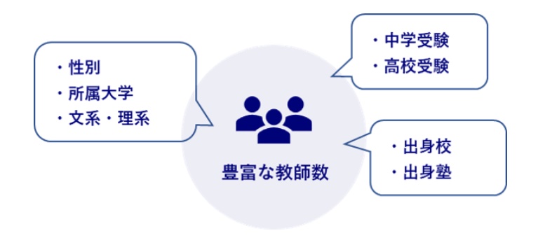 現役の東大生をはじめ、早慶・医学部などの難関大生、そして難関大を卒業したプロの講師が在籍しています。