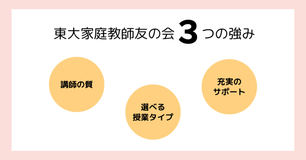 ここでは、「東大家庭教師友の会」の3つの強みを詳しく解説します。