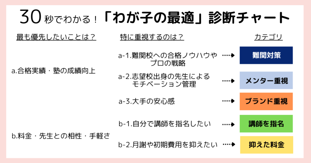 はじめに、5つのカテゴリのうちどれに該当するのかを「診断チャート」でチェックしてみてください。