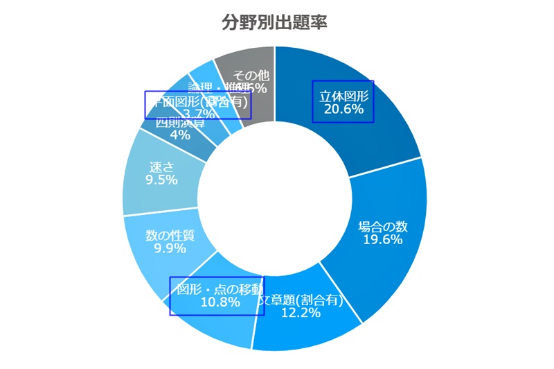 学校で差はあるものの、図形問題は全体の約1/3を占めることがわかりました。